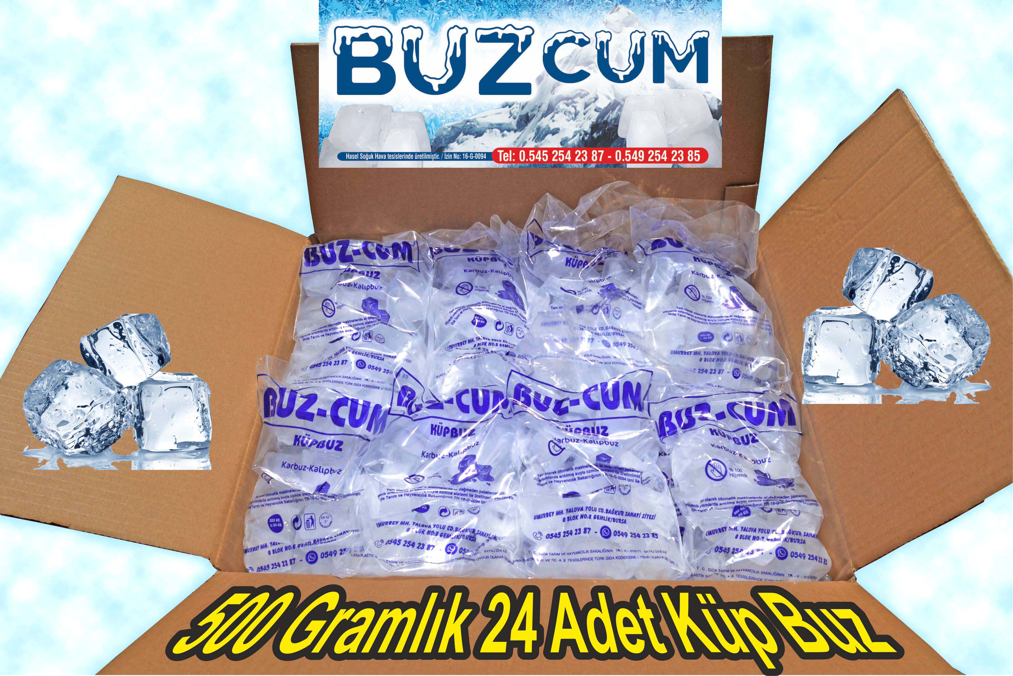 Küp buzlarımız; 500 gramlık 24 lü kolide 12 kg. ve 7 kilogramlık 2 li kolide 14 kg. olarak,